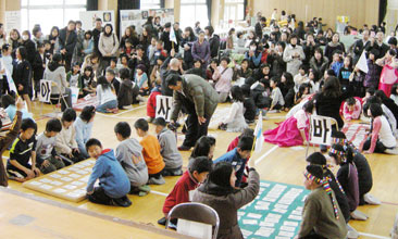 [ 多くの保護者や教育関係者の見守るなか、ウリマル・カルタ大会に熱中するオリニたち