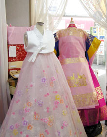例えば結婚を目前に控えた20代の同胞女性たちは、「オンリーワン・ウエディングドレス」にこだわると話す。同店では韓国の伝統的な結婚式用衣裳一式は、女性用で50組、男性用でも20から30組を常時用意しているという品揃え。お色直し用のチマ・チョゴリはレンタルで100種類、手描きや刺繍などを施した生地だけでも300から400枚用意している。