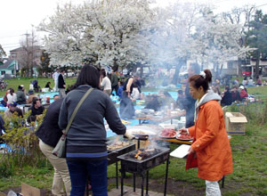 民団神奈川・川崎支部(李成坤支団長)と婦人会川崎支部(車龍仙会長)は合同して4日に市内桜本の桜川公園で花見会を開催した。約200人が参加。満開の桜の木のもとに準備された韓食弁当を広げ豚肉、キムチ、韓国餅などと一緒に食し、チャンゴのリズムや参加者の韓国歌謡にあわせ踊ったりした。
