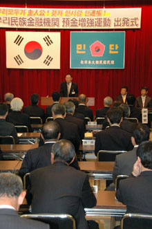 民団中央本部の鄭進団長は、「民団の今年度重要方針のひとつが同胞経済・生活支援運動。民団と韓商連、韓信協、韓国系銀行の在日支店が連携して民族金融機関の経営基盤強化をめざすため、同胞一人ひとりが預金増強運動に参加していこう」と呼びかけた。