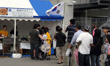 「富士宮焼きそば」はもとより「厚木シロコロホルモン」、「遠野ジンギスカン」など44の自慢のメニューがそろった。就航先の韓国を代表して参加した民団静岡県本部(金光敏団長)は、婦人会の協力を得て2日間でチヂミ1900枚を売った。