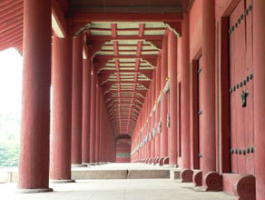 朝鮮朝時代の宗廟(95年登録)。李成桂が漢陽(現在のソウル)に遷都した1394年に着工し、翌年完成。朝鮮朝時代の歴代の王と王妃の霊牌が奉られた。