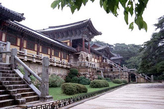 石窟庵と仏国寺(95年登録)。仏国寺は慶州市の吐含山の麓にある新羅時代の寺院。新羅法興王代(514〜540年)に創建された。石窟庵は吐含山の東側にある。新羅景徳王10年(751年)に宰相の金大城によって建立されたと伝えられている。