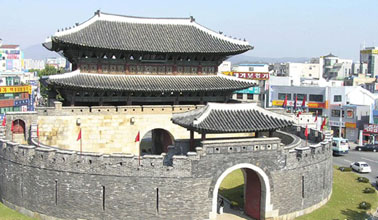 水原の華城(97年登録)。京畿道水原にある朝鮮朝時代後期の代表的な城塞。1794年から2年を超える歳月をかけて完工。城壁の長さは5㌔㍍を超える。