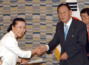 【ソウル】3・1文化財団が主管する3・1文化賞特別賞の副賞3000万ウォンを在日同胞社会と関連のある事業を展開している団体に社会還元すると明らかにしていた民団は、公法団体「在日学徒義勇軍同志会」、社会福祉法人「ナザレ園」、社団法人「在日韓国人本国投資協会」にそれぞれ1000万ウォンずつ贈ることを決め、21日にソウル市内のロイヤルホテルで寄贈式を開いた。投資協会への寄贈は奨学金事業支援のため。