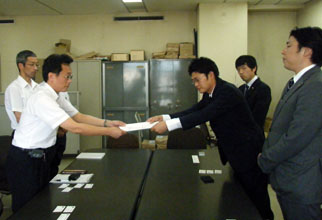 [ 滋賀県教育委員会に要望書を提出する青年会 ]