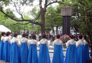 [ 慰霊歌を合唱する婦人会広島県本部のメンバー ]