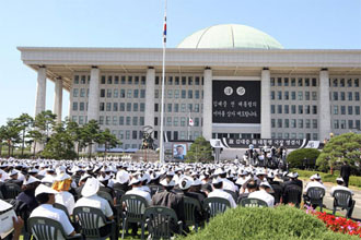 [ 23日に国会議事堂前広場で行われた金大中元大統領国葬告別式 ]
