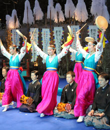 閉幕式では最後まで会場に残っていた観客と出演者、ボランティアなどが舞台に上がり、韓国南部の海岸地方に伝わる秋夕の民俗舞踊「カンガンスルレ」で5つの大きな輪をつくり、来年の再会を約束した。