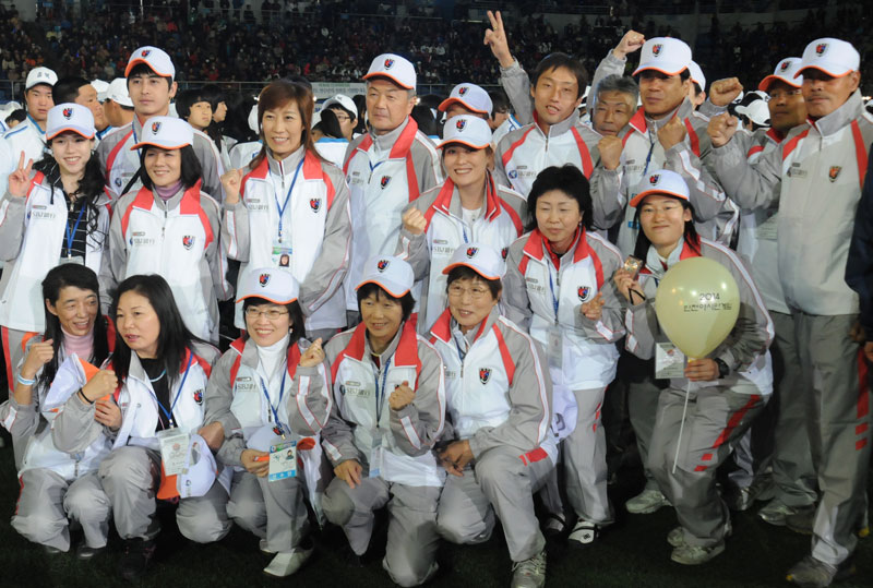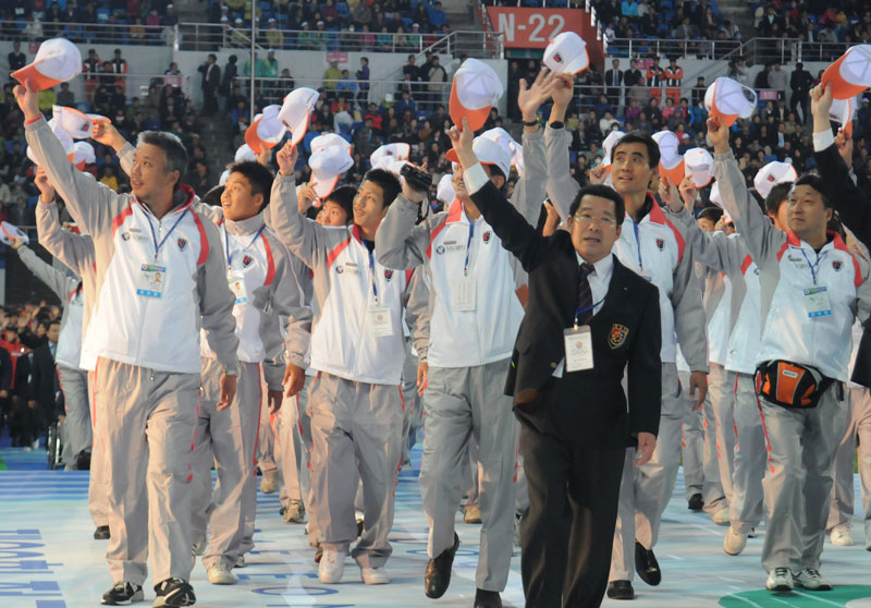「心をひとつに!大田を世界に!」をメインスローガンにし、宇宙開発都市らしくな銀河をイメージした聖火点火とともに始まった開会式で在日同胞選手団(柳箕桓団長)は白と薄茶のユニホームで入場。