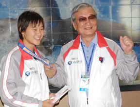 表彰式では、大韓水泳連盟のはからいで、柳箕桓在日同胞選手団長がプレゼンテーターとなり、銅メダルをかけてもらった。