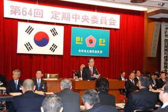 第64回定期中央委員会が23日、東京・港区の韓国中央会館で開かれ、在籍200人中164人が出席し、過去1年の活動を総括するとともに、2010年度の事業方針として、最重点課題である地方参政権獲得運動を中心に、組織活性化運動、次世代育成運動の推進とともに、在外同胞として祖国の平和統一のための活動、自立財政確立のため財政委員会の設置などを原案通り採択した。中央の方針決定を受け、3月の地方委員会、4月の支部総・大会などを経て、全国一丸となり「明るい在日同胞社会の構築」へ各種運動・事業が展開されていく。