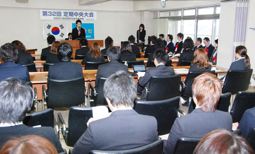 在日本大韓民国学生会の第32回定期中央大会が19日、韓国中央会館で開かれ、新会長に金重伸君(早稲田大)を選出するとともに、会員拡大と組織強化を柱とする新年度活動方針を決めた。