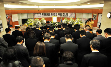 民団中央本部は23日、民団中央会館(東京都港区南麻布)の1階に天安艦殉国将兵の冥福を祈り、追悼所を設置するとともに追悼式をもった。