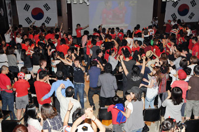 [ ギリシャ戦、アルゼンチン戦とも400人余りが勝利の叫びを送った(韓国中央会館) ]