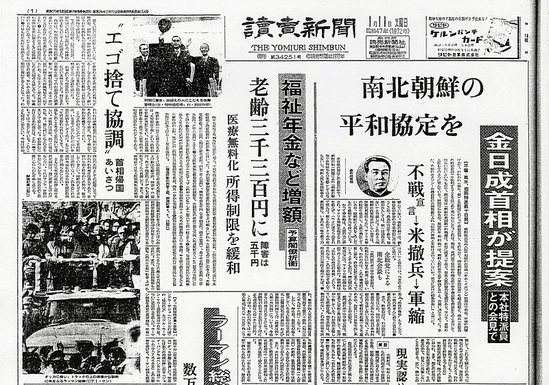 たとえば、72年1月、金日成主席(当時首相)は日本の読売新聞特派員との単独会見で「朝鮮での緊張を緩和するためには、なによりも朝鮮休戦協定を南北間の平和協定に替える必要がある」と強調していた(読売新聞1月11日付「南北朝鮮の平和協定を、金日成首相が提案」)。