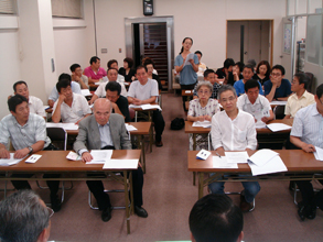 [ 民団山梨県本部で実施された「模擬選挙」説明会 ]