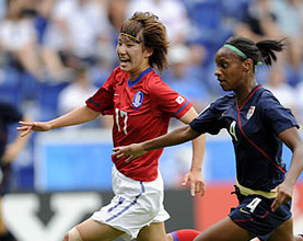 韓国代表に選ばれた在日同胞4世の康裕美さん(漢陽女子大、19=FW)がつけた背番号は、南アフリカW杯で大活躍を見せた李青龍選手と同じ「17」番。