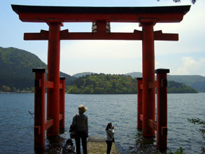 箱根芦ノ湖周辺の高麗(駒)形神・伝説と遺跡 箱根芦ノ湖周辺も高麗人伝説や高麗(駒)神信仰の名残りがみられる。明治時代以前までは駒ヶ岳山頂の馬降石を聖地「磐坐(イワクラ)」とする高麗大神(駒形明神・元宮)信仰が盛んで、箱根権現(奈良時代に満願僧正が開山)が統括していた。箱根権現参道の一番下の鳥居は水中に立ち、山頂から鳥居を経て対岸の塔ヶ島(箱根最古の三神の一つ)までは南北に並ぶ。鳥居前の水中にはかつての参道跡も残るか。