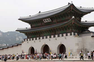 光化門は1395年に建立され、豊臣秀吉による壬辰倭乱(文禄・慶長の役、1592‐98年)の際に景福宮もろとも焼失。高宗の時の1865年に景福宮とともに再建された。今回の復元は、韓国戦争(1950年6月〜53年7月)によって門が焼失してから60年ぶり、朴正煕政権時代の再建(68年)から42年ぶりとなる。門の位置と角度が元通りに戻され、門楼も木造で復元された。