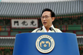 【ソウル】李明博大統領は15日、光化門広場で行われた光復節65周年記念式で「ともに前進する国民、さらに大きな大韓民国」と題した祝辞を通じ、「平和共同体と経済共同体、民族共同体の過程を通じて我々は平和統一を実現することができる」とし「3段階南北共同体構想」を提示した。同時に、「統一は必ず来る。その日に備えて統一税など現実的な案も準備する時だ」とし、この問題を社会各界で幅広く論議するよう提案した(写真)。