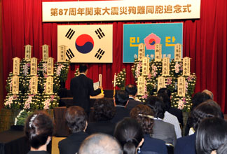 関東大震災(1923年)から87年の9月1日、東京、神奈川、千葉、埼玉など、関東地区の民団は、同大震災の混乱時に日本軍隊・警察や各地につくられた自警団などによって虐殺された数千人にのぼる同胞の冥福を祈る追悼式を各地で開いた。