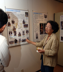 [ 展示品を説明する李素玲さん(右) ]