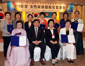 28日午前の女性家族部長官表彰式では、金ギョシク次官が、金彩玉(兵庫県)、韓三燮(中央)、李玉子(山梨県)、朴行子(福島県)、朴貴禮(大阪府)、韓初恵(福井県)、朴富栄(愛知県)、辛種連(岡山県)、朴春子(高知県)氏の9人と東京・荒川支部に表彰状を手渡した。