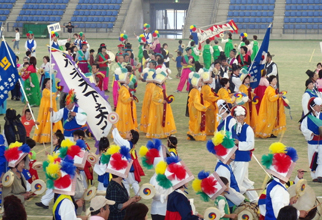 [ フィールド内を練り歩く大農楽隊(中部国際親善マダン)