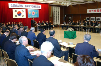 [ 26日に韓国中央会館で開かれた03年度前半期全国地方団長・中央傘下団体長会議 ]