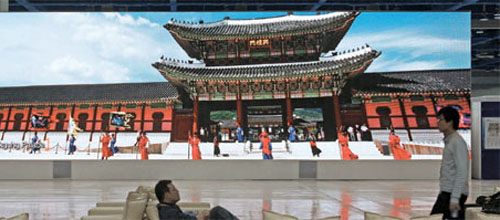 大型スクリーンには、▽雪岳山や漢拏山などの自然▽韓流▽躍動するソウル▽苦難の歴史と克服した精神の4部からなる映像が継続して流された。