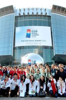 ソウルで開催されたG20サミット(主要20カ国・地域)首脳会議(11・12日)には、各国首脳や国連、国際通貨基金(IMF)、世界銀行、国際労働機関(ILO)などの代表をはじめ、世界的な企業の最高経営責任者(CEO)、プレス関係者ら約1万人が集結した。この一大イベントに世界の目が注がれる半面で、韓国からさまざまなメッセージを発信することができた。市民たちの自発的参加と協力もあって成功裏に終えた今、国民は新たな自負心を感じているようだ。