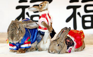 今年は辛卯年。韓服を着て新年のあいさつをする京幾道竜仁・エバーランドのウサギたち。ウサギは繁盛と豊かさ、長寿を象徴する。韓国でも昔話や童謡などによって親しまれてきた。エバーランドに昨年末に設けられた「ウサギ村」には、レッキス、アンゴラ、ロップイヤーなど多様なウサギが約100羽棲む。来場した子どもと家族が、新年の健康と福、そして飛躍を願い、韓服のウサギと一緒に写真を撮ったり、触れ合う企画もある。