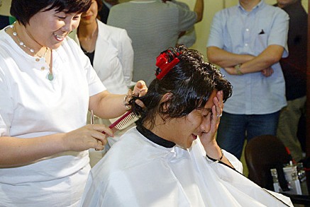 5月31のサッカー韓日戦で決勝ゴールを決めた安貞桓が自慢の長髪をばっさりと刈った。