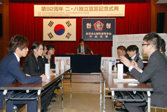 この後、学生会中央本部の鄭昇栄副会長と鄭允枝組織部長が、敵国の首都・東京で600人を集めた組織性、命を賭した献身性、独立宣言書に込められた進取性について解説、その精神と意義を参加者一同で共有した。