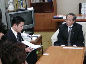 会長はじめ青年会中央本部のメンバー7人は自民党本部・政務調査会長室の中丸到生室長と議員会館の事務所を訪問、発言への抗議文を手渡した。