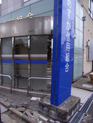 ようやく事務所内の片付けが終わった。電話、ファクス、インターネットが不通という。福島本部の敷地周辺はかなり沈下し、1階のあすか信組郡山支店のエントランスはガラスが割れ、床が波打っていた。
