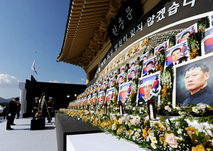 【ソウル】北韓による西海での哨戒艦「天安」撃沈事件から1年の3月26日、犠牲となった乗組員46人と捜索活動中に殉職した海軍特殊部隊員1人を悼む行事が韓国各地で行われた。