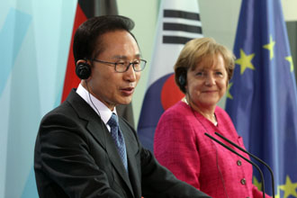 李明博大統領はドイツを訪問中の9日、「北韓が国際社会と非核化について確実に合意すれば、来年3月にソウルで約50カ国・地域の首脳らが出席する第2回核安全保障サミットに金正日国防委員長を招待したい」と表明した。