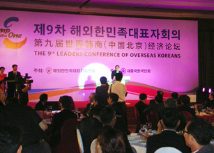 北京市内のホテルで開かれた海外韓民族代表者会議の第9回総会には、15カ国から390人が参集した。民団からは中央本部の鄭進団長をはじめ、黄迎満議長、金昌植監察委員長、金宰淑、丁海龍両常任顧問ら40余人が参加。会期中、李揆亨駐中国大使、韓国与野党の有力議員や中国側要人のほか、中国各界で活躍する朝鮮族の要人ら来賓も多数臨席した。