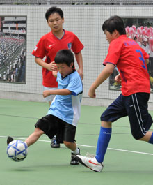 当日は真夏を思わせる猛暑となったが、各チームとも気合い十分。闘志あふれるプレーが見られ、ゴールのたびに会場は元気なオリニたちの歓声が沸き起こった。優勝は足立区の「なかよしFC」。2位は四谷小、3位は豊島少年SC。