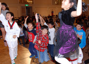 栃木青商(崔鎌憲会長)が主催した11日の「家族クリスマス会」は、両親や祖父母とともに参加した小さな紳士・淑女が主役。韓相榮さん(民団栃木本部事務局長)の指導でテコンド演武を披露したり、ジャグラーと一緒に夢中になって遊んだ。