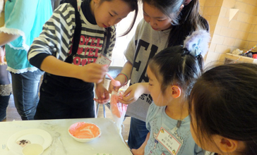 愛知では4日、オリニ47人が民団本部会館でのクリスマスパーティーに参加。リーダー役を務めた青年会愛知本部(李法子会長)の役員と一緒になって韓国語ゲームやケーキづくりに興じた。