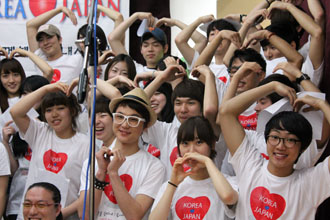 朴さんの呼びかけに、障がい者ダンススポーツ世界チャンピオンの権庸愚さん、歌手のハリムさん、日本人留学生、外国人労働者、朴さんが運営する芸能企画事務所の新人グループ「純粋」(スンス)ら50人が集まり、プロジェクトグループ「Peace For Peace」を結成した。
