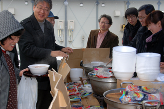 【福島】新規渡日者で構成する親睦団体、東京韓人会(朴栽世会長、新宿区百人町)は10日、郡山市を訪れ、緑ヶ丘7丁目の応急仮設住宅で避難生活を送る原発被災民にサムゲタンと韓国のり250食分を提供した。