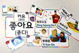 【大阪】カルタを楽しみながらハングルを学べる「ハングルカルタⅡ」が完成した。07年に発行した「ハングルカルタⅠ」が「体」「顔」「動物」「野菜」「果物」など、子どもたちが身近に接する名詞を中心に100単語を網羅したのに対し、「Ⅱ」では歴史や地理の理解にも役立つよう工夫してある。民団大阪本部(鄭鉉権団長)と大阪韓国教育院(宋鍾錫院長)が協力して共同制作した。