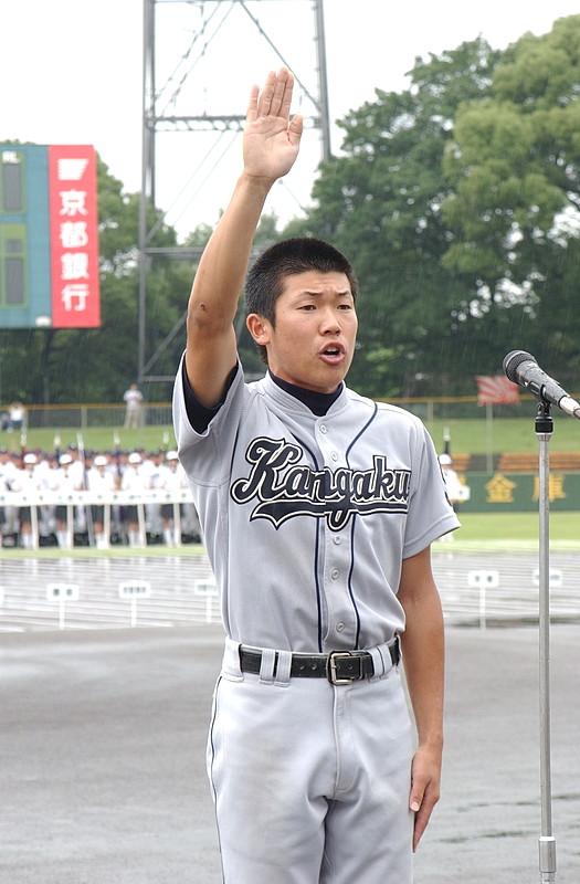 【京都】「魂・感謝・感動―オル・カムサ・カムドン」力強い韓国語と日本語のメッセージが京都の西京極球場に響いた―。時折大粒の雨が混じる梅雨空の下、12日に開かれた全国高校野球選手権京都大会の開会式で、抽選会で1番クジを引いた京都韓国学園の李良剛主将が韓国語を交えて選手宣誓した。韓国語を交えた宣誓は高校野球の歴史上初めてのこと。