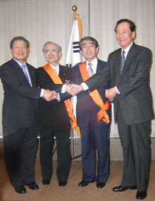 JAWOC那須、岡野氏に韓国が「青龍章」授与(03.7.16)