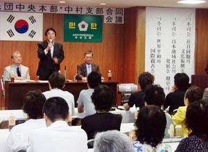 中村支部に中央本部から団長が訪れたのは初めて。中央本部の梁東一副議長、民団愛知本部の鄭博団長、徐海錫議長、丁海遊監察委員長、卞利長中央本部顧問らも出席した。