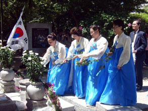 広島韓国伝統芸術院メンバーによる「鎮魂の舞」の後、この1年間に亡くなった8人を含めた計2671人の同胞死没者名簿(過去帳)が権団長により納められた。